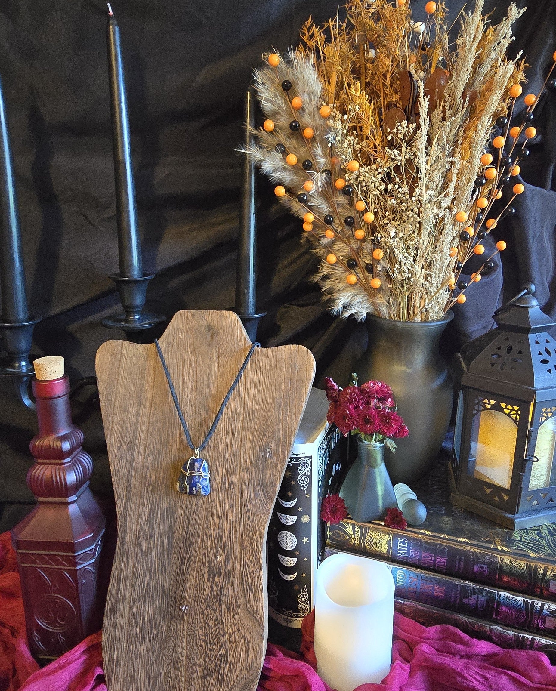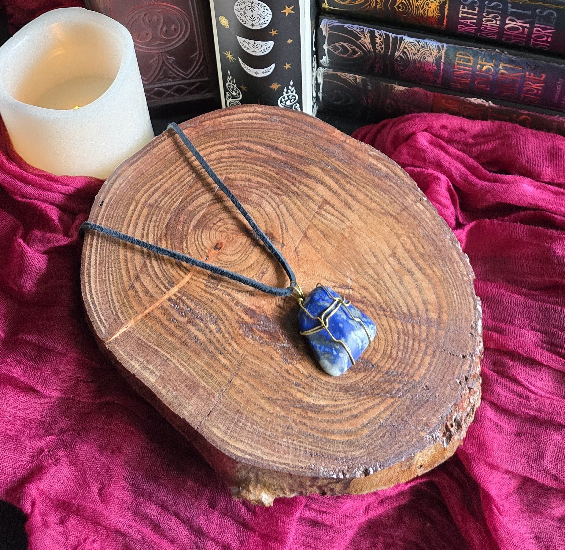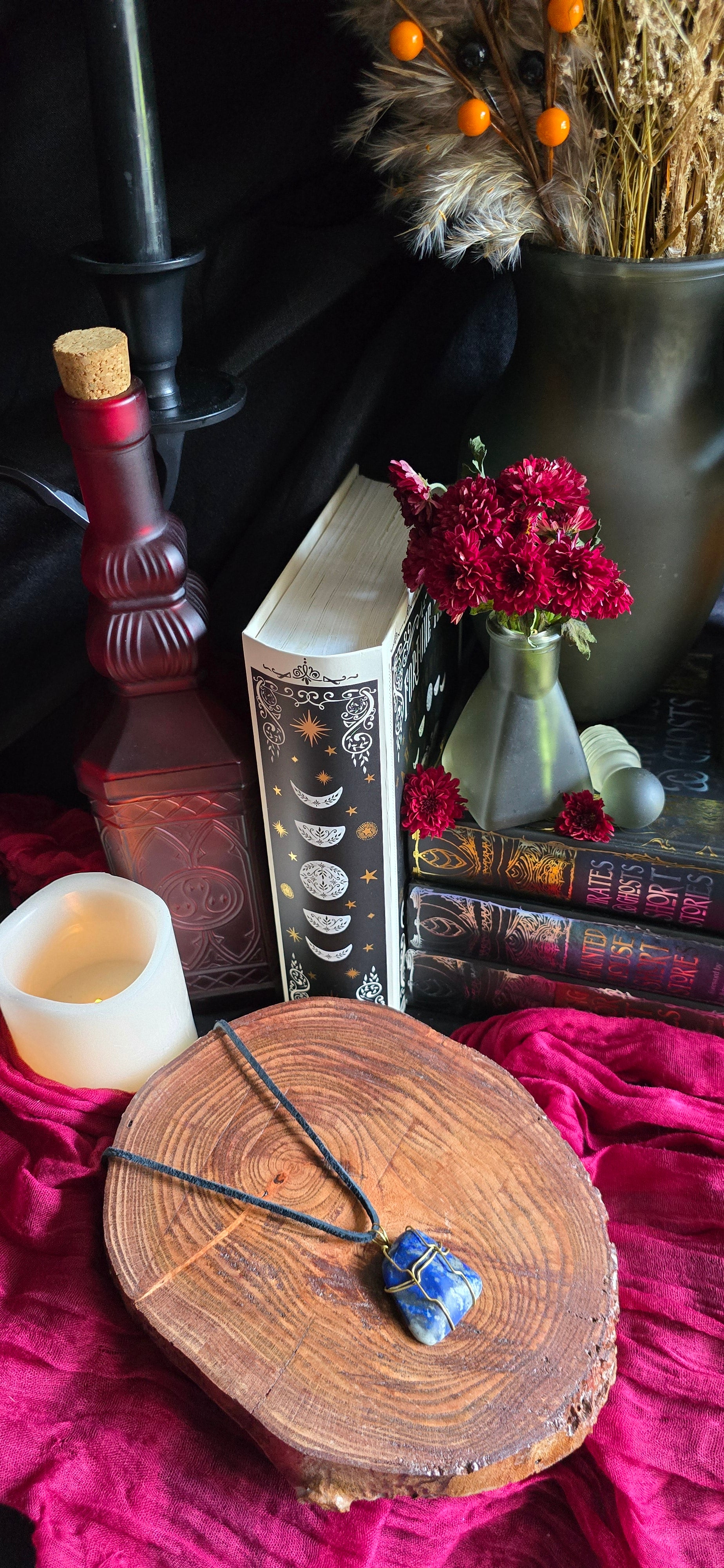 Still waters within the chaos, Calming the Storm embodies that moment when breath steadies & clarity returns. This Lapis Lazuli pendant, wrapped in gold color copper coated wire, balances intellect with intuition, helping you find peace through understanding.