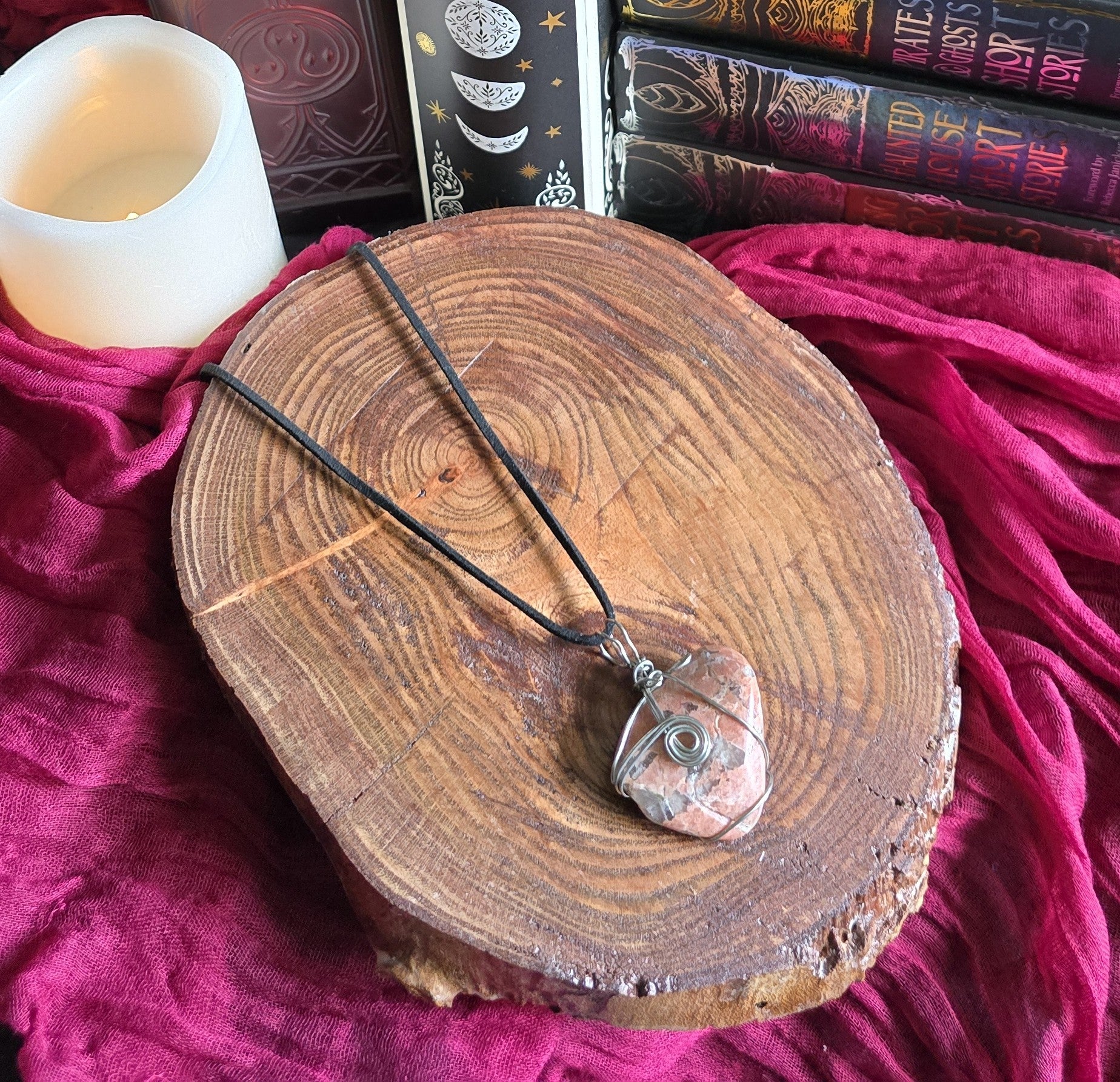 ✦ Materials: South Dakota Red Feldspar wrapped in silver color copper coated wire
