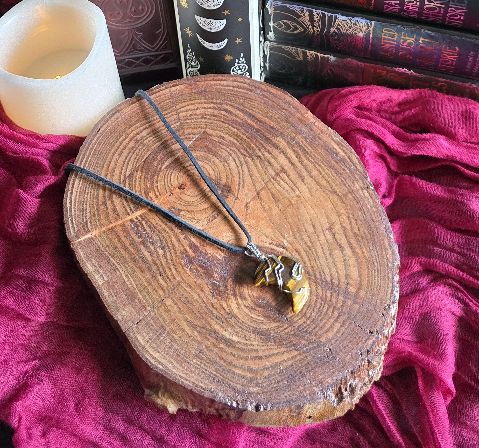 ✦ Materials: Tiger’s Eye moon wrapped in silver color copper coated wire