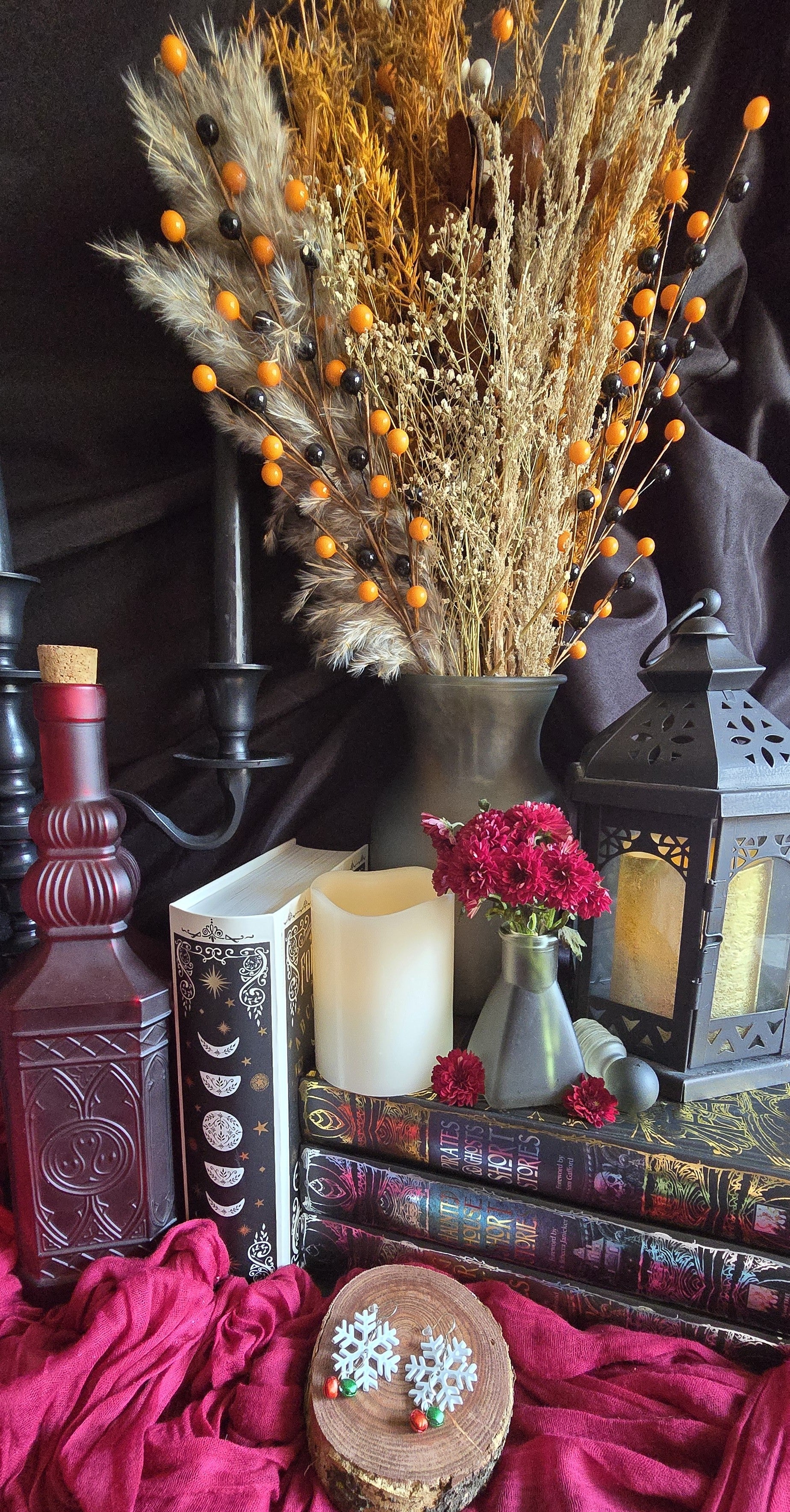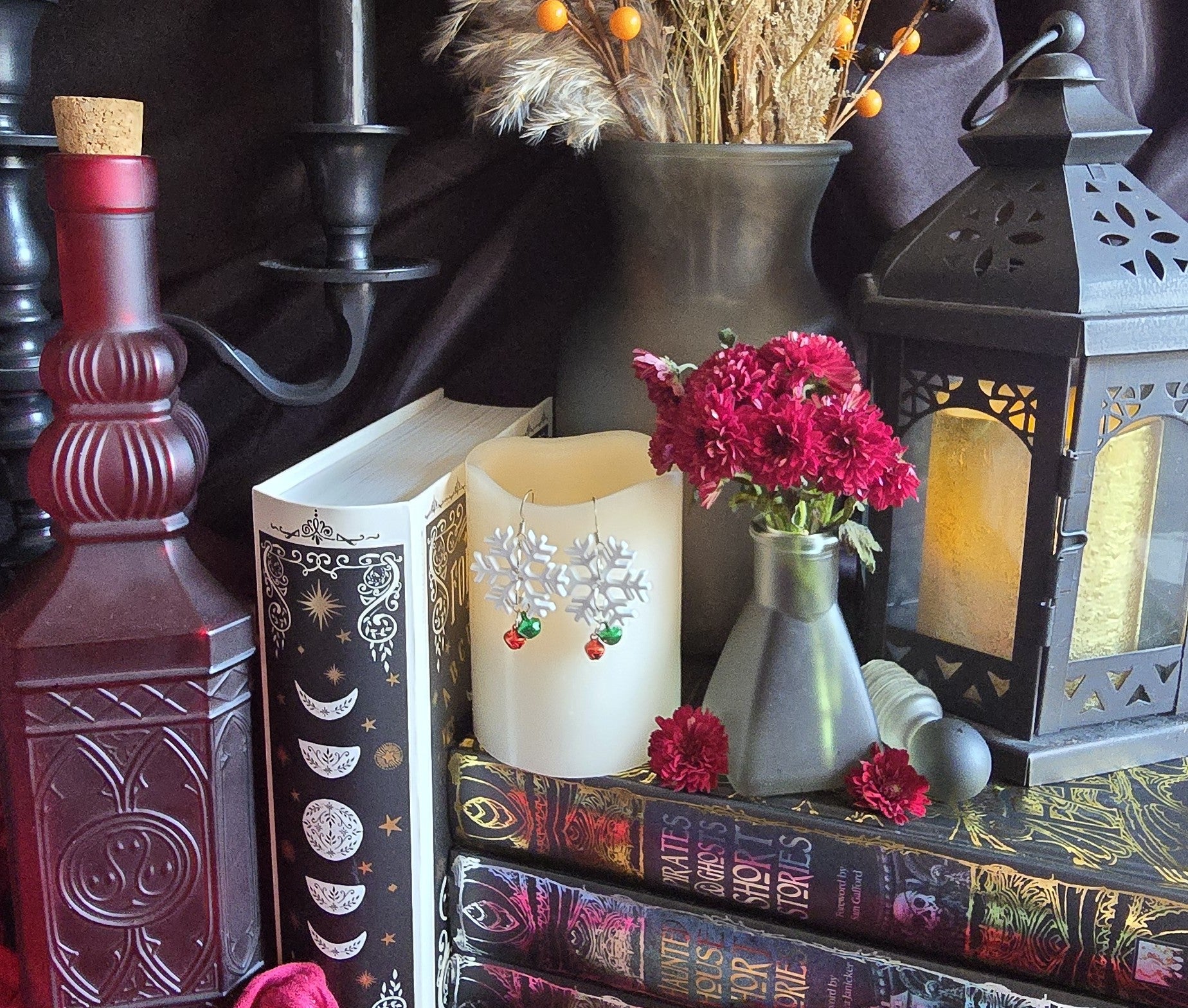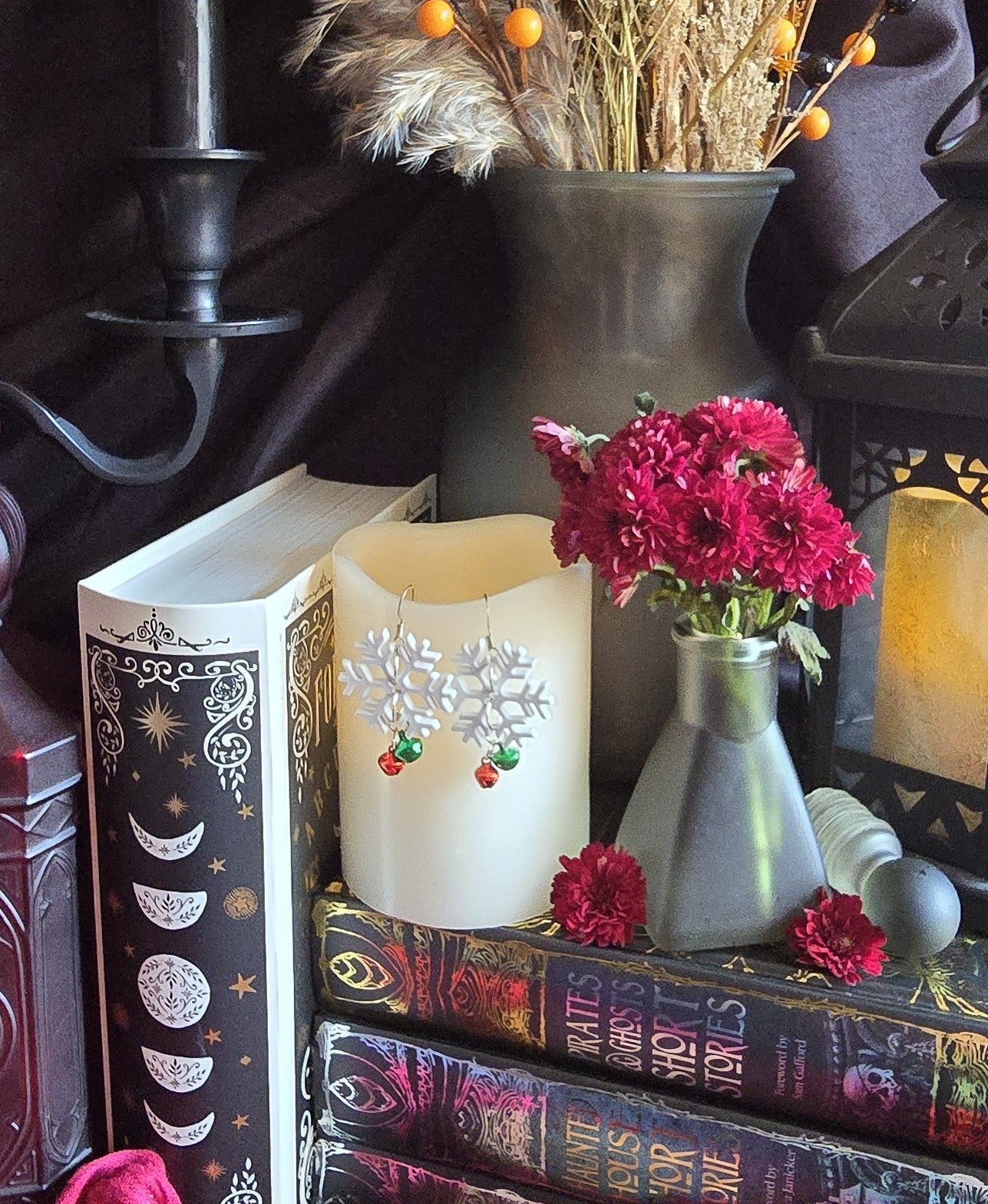 Playful, cozy, & full of spirit, Jingle Flakes blend nostalgia with sparkle. Repurposed snowflake buttons adorned with tiny red & green jingle bells create a whimsical soundscape of holiday cheer.