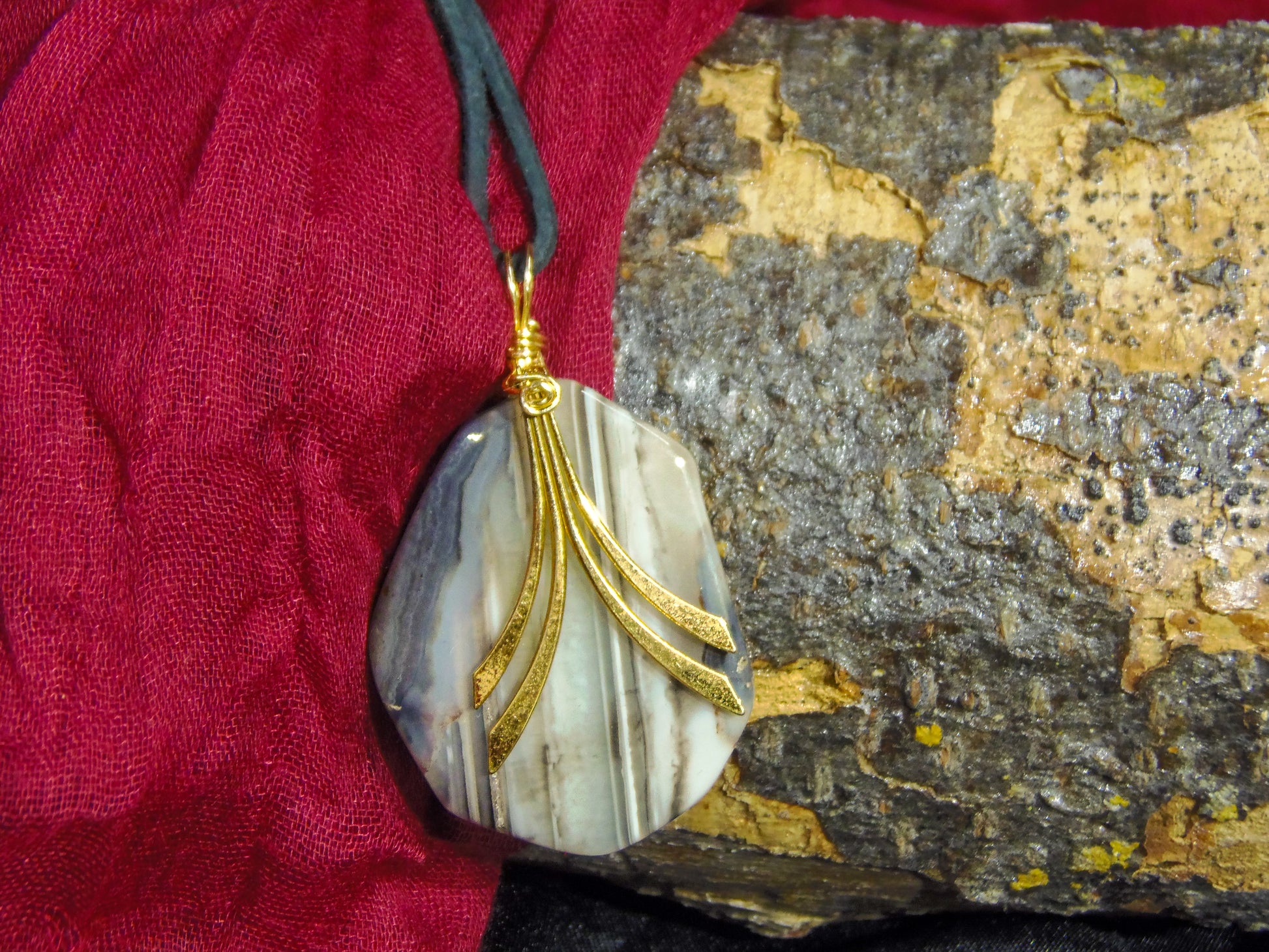 ✦ Materials: Gray banded Agate with repurposed brass charms