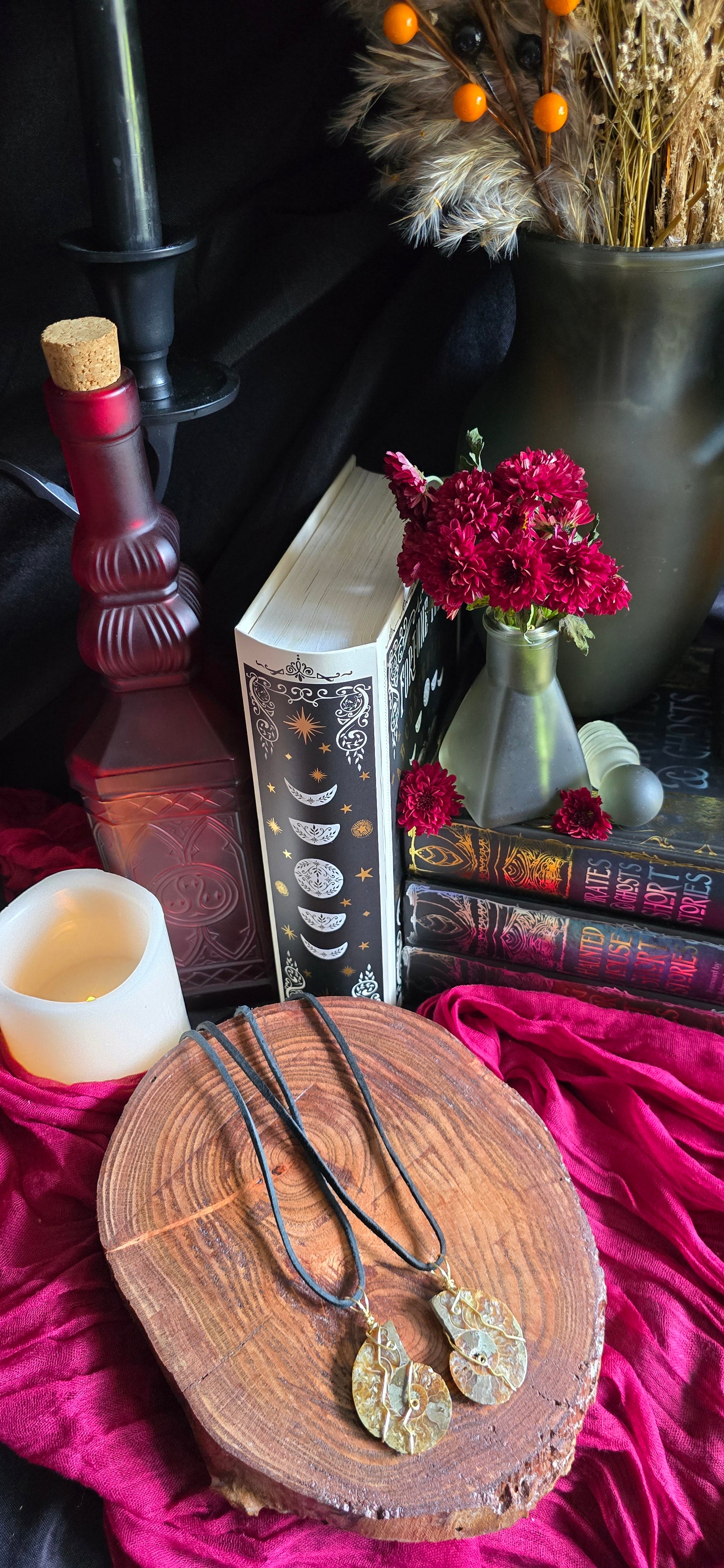 Each fossil half was wrapped with intuitive precision, honoring its natural symmetry. The gold tone amplifies their warmth, adding a glow of shared vitality. Whether worn together or apart, Unity carries the frequency of loyalty, trust, & enduring connection.