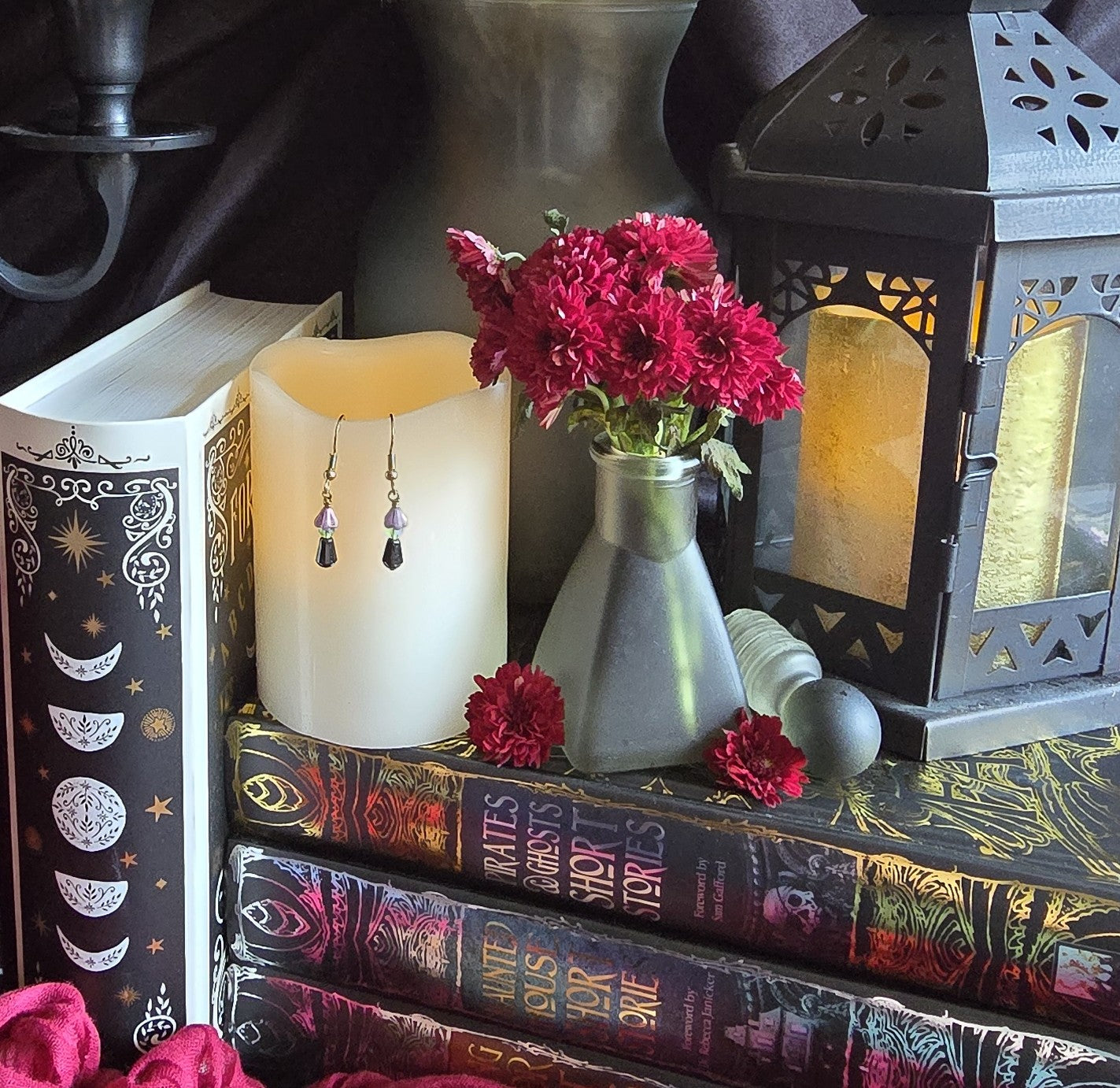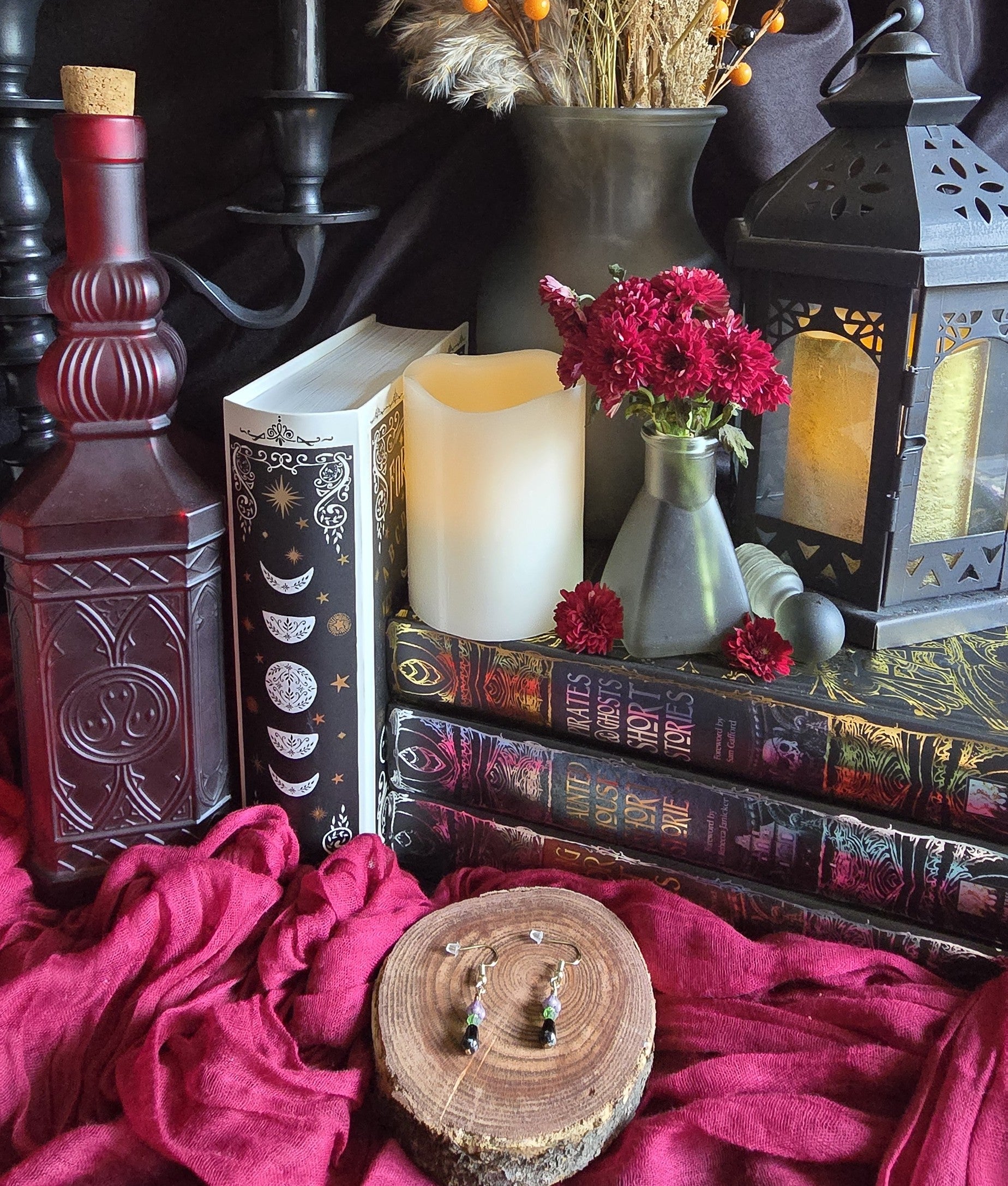 A wink to classic witchy charm, the Witch of the West Earrings channel the mischievous elegance of the Wicked Witch of the West through thoughtfully repurposed glass beads.